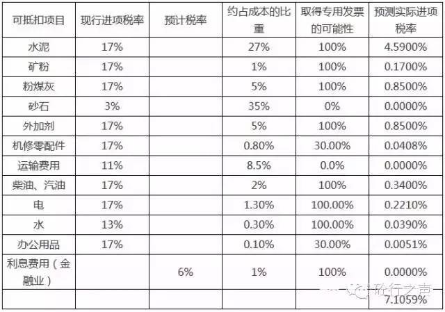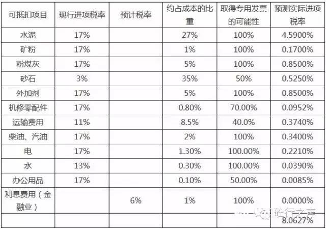 (3)由于也有部分混凝土公司对泵送等劳务采用的外包方式,如考虑所发生的外包劳务费能够取得增值税专用发票,预测税负率还会有所降低。