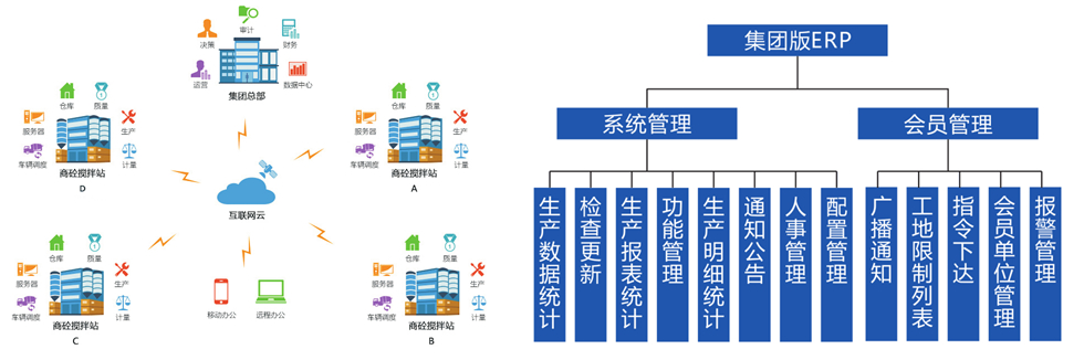 砼软ERP系统包含销售管理、生产管理、配比管理、原材料管理、车辆管理、设备管理、财务管理、磅房管理、数据采集、数据分析等功能模块,从简单高效的生产管理流程到复杂的统计报表、从简单的数据共享到智能的数据分析,砼软ERP系统将带您体验全新的企业管理运作模式。